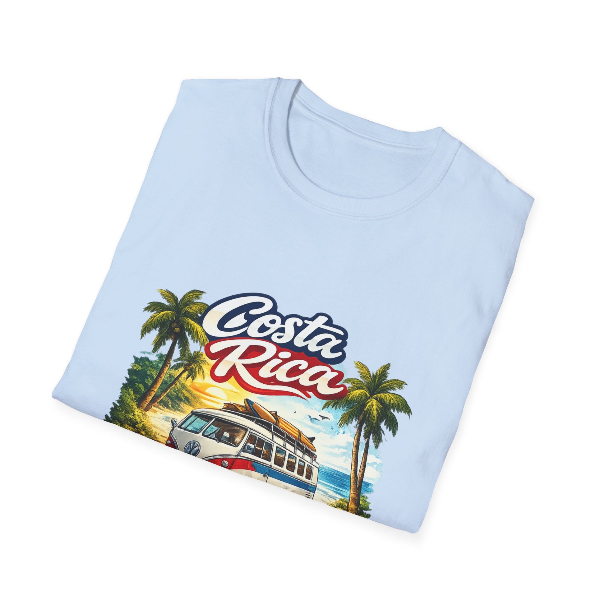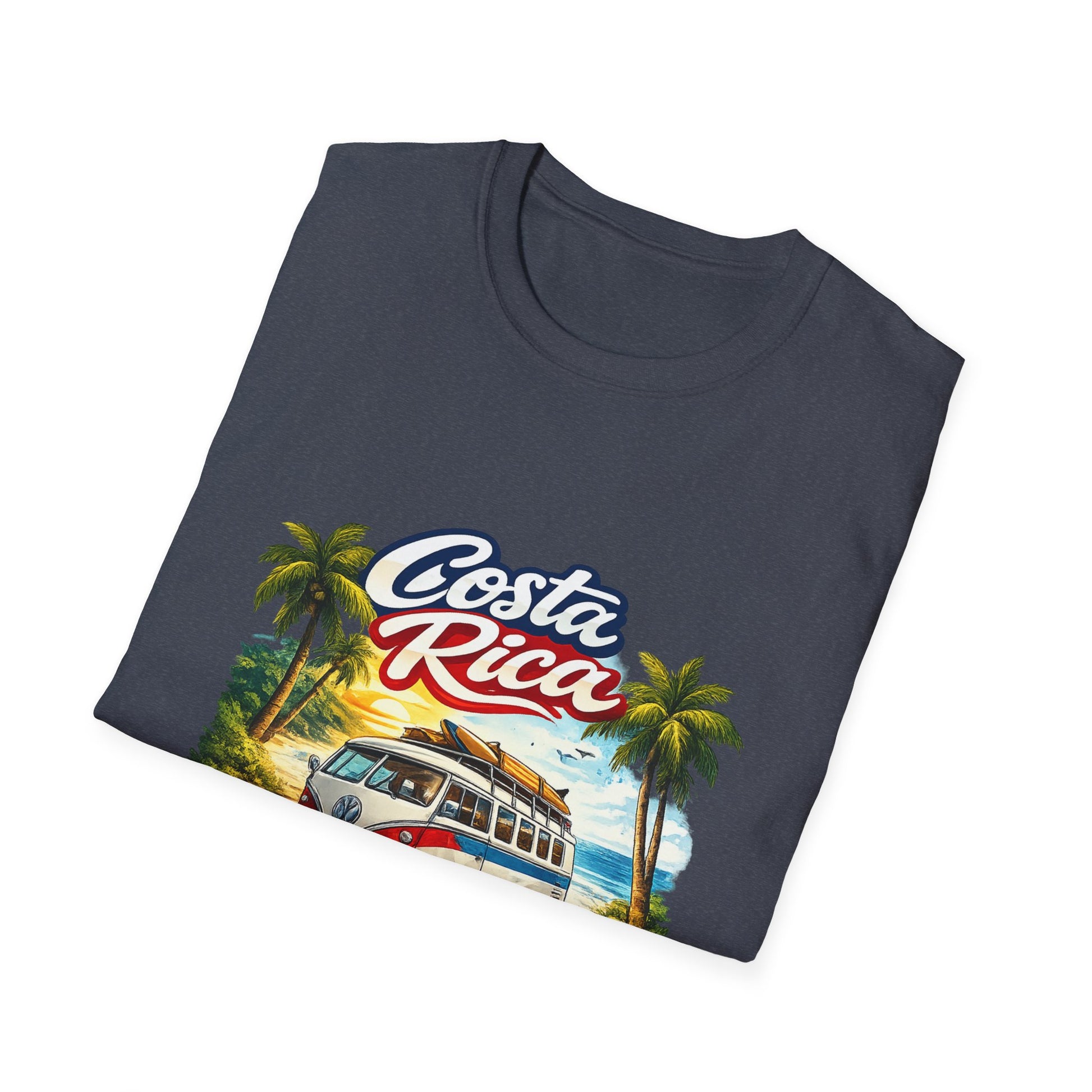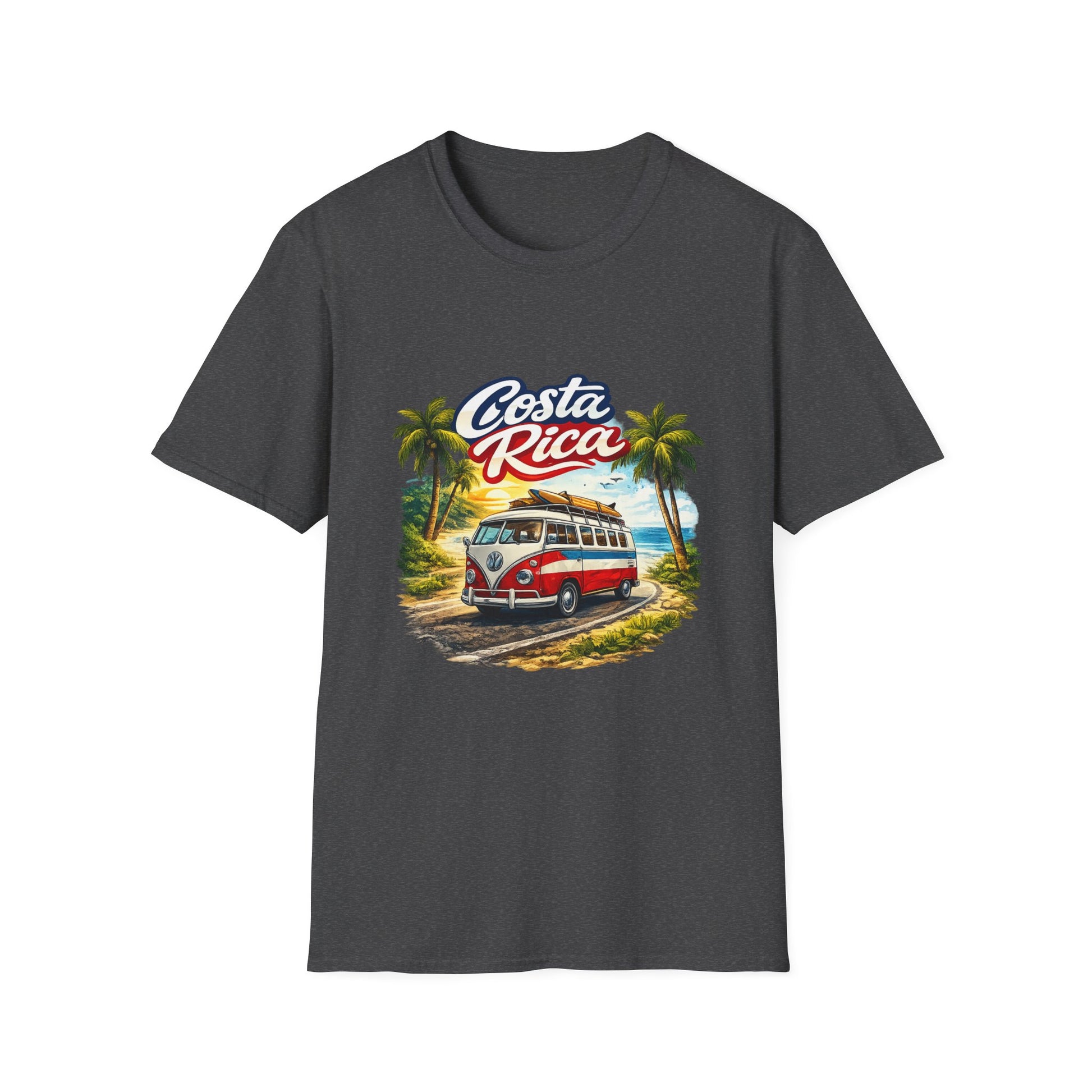 Lleva contigo la vibra tropical de Costa Rica con esta camiseta inspirada en el clásico surf bus y los atardeceres de playa.
